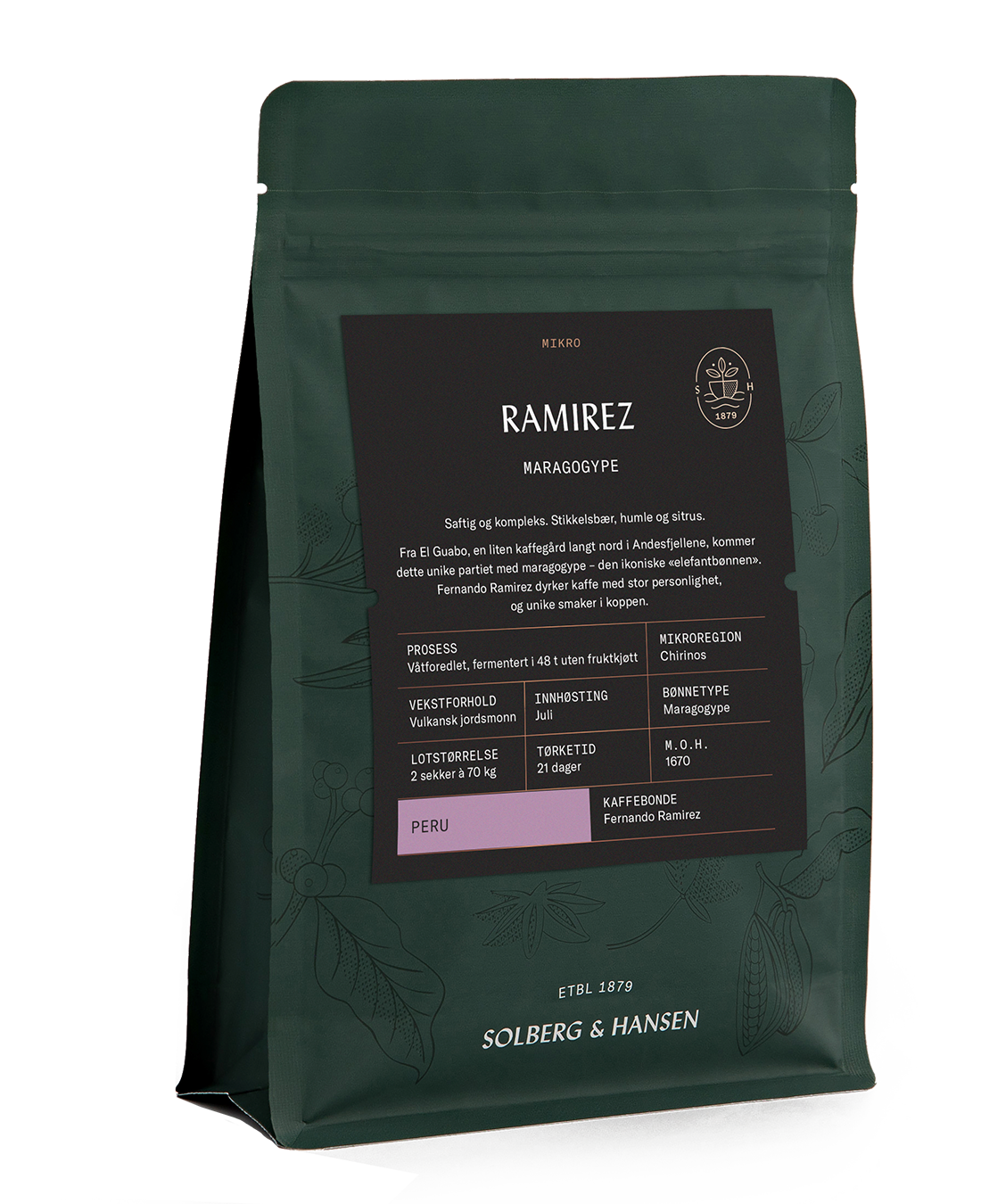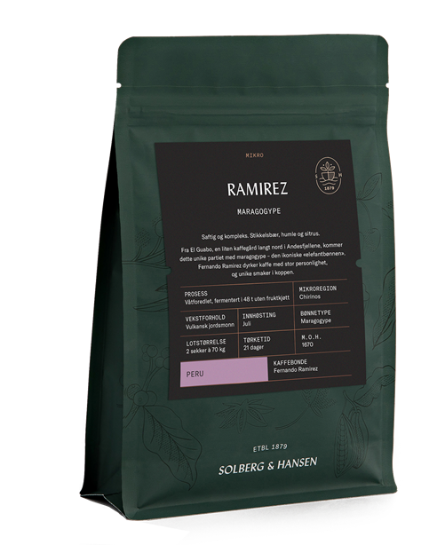 Fra El Guabo, en liten kaffegård langt nord i Andesfjellene, kommer dette unike partiet med maragogype – den ikoniske «elefantbønnen». Fernando Ramirez dyrker kaffe med stor personlighet, og unike smaker i koppen.