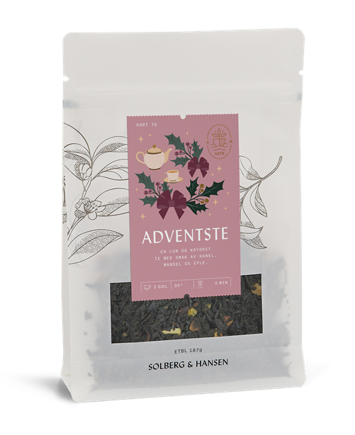 Vår tradisjonsrike adventste er en lun og krydret sort te med smak av kanel, mandel og eple.