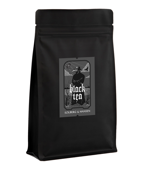 Pestdoktoren pryder forsiden av Black Tea, som er fylt med økologisk, sort te fra den sagnomsuste Yunnan-provinsen i Kina.