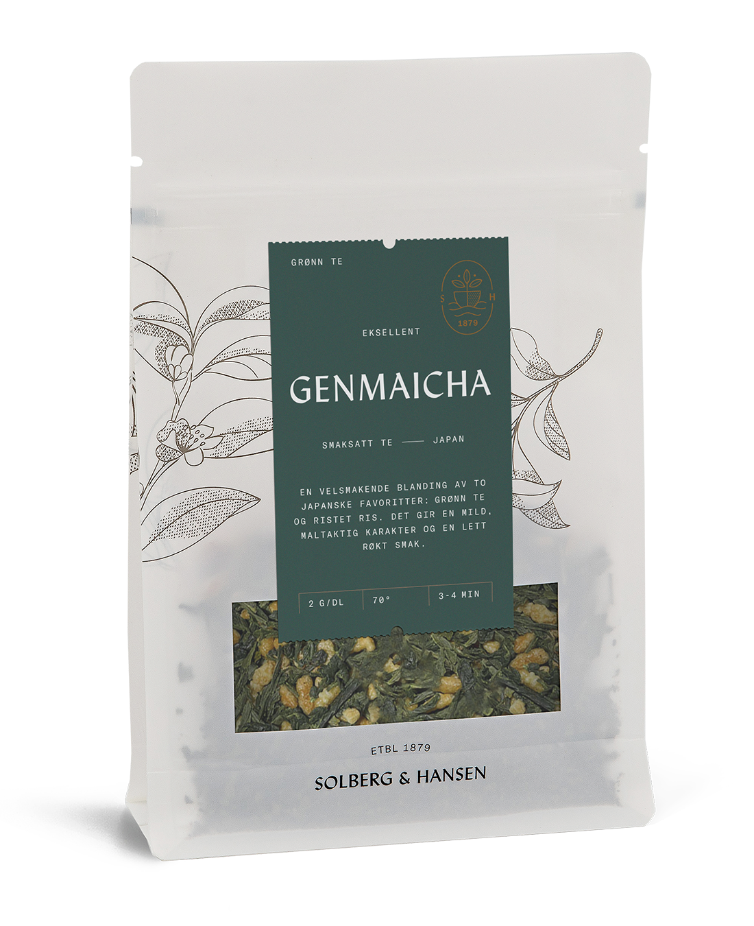 En velsmakende blanding av to japanske favoritter: grønn te og ristet ris. Det gir en mild, maltaktig karakter og en lett røkt smak.