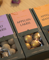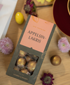 Søt lakris trukket i melkesjokolade med frisk appelsinsmak og et gyllent dryss.