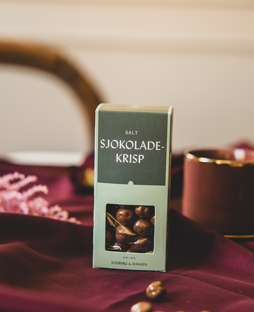 Søt melkesjokolade med en sprø, gyllen kjerne, og et hint av havsalt, som gir en perfekt balanse mellom sødme, salt og krønsj.